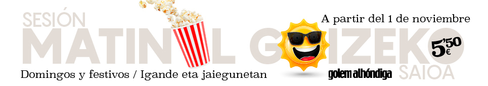 | A partir del 1 de noviembre Domingos y festivos en Golem Alhóndiga Matinales por 5.50€. | ||