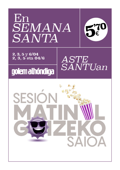 Del 2, 3, 5 y 6 de abril en Golem Alhóndiga puedes disfrutar de nuestras Sesiones Matinales por solo 5.70€.